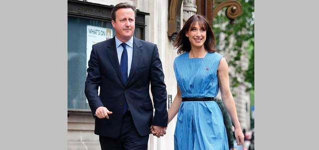 كاميرون وزوجته سامانثا قبيل الاستفتاء التاريخي. أ.ف.ب