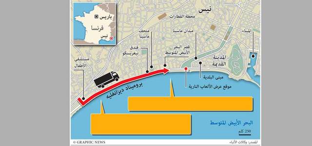 قام سائق الشاحنة الذي انقض على الحشد في نيس بإطلاق عيارات نارية عدة من مسدس قبل أن يقتل، وفق مصادر متطابقة.
