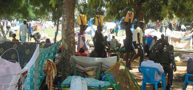 نازحون من جنوب السودان في أحد مخيمات الأمم المتحدة في جوبا. أ.ب