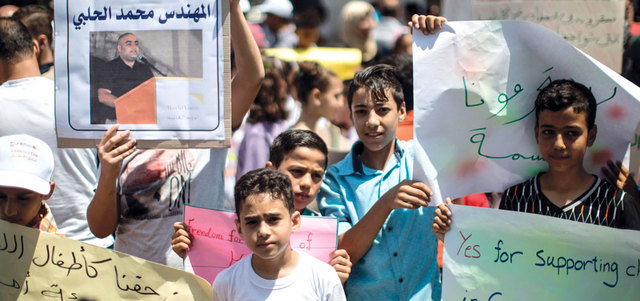 اعتصام في غزة تضامناً مع مدير «وورلد فيجن» المعتقل في إسرائيل. أ.ف.ب