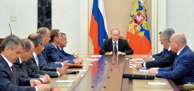 وضم اجتماع مجلس الأمن الروسي رئيس الوزراء ديمتري مدفيديف، ووزراء الخارجية سيرغي لافروف، والدفاع سيرغي شويغو، والداخلية فلاديمير كولوكولتسيف، إضافة إلى رئيسي الاستخبارات الداخلية (إف إس بي) ألكسندر بورتنيكوف والاستخبارات الخارجية (إس في آر) ميخائيل فرادكوف.