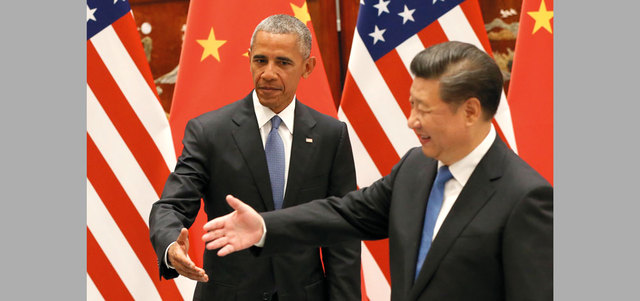 أوباما مع نظيره الصيني في مدينة هانغتشو قبيل قمة مجموعة الـ20. أ.ب