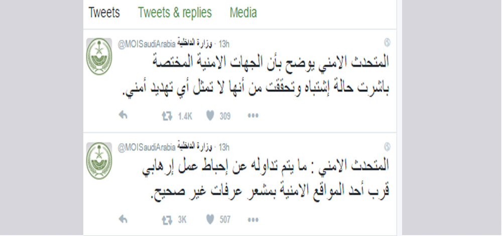 تغريدتا وزارة الداخلية السعودية. تويتر