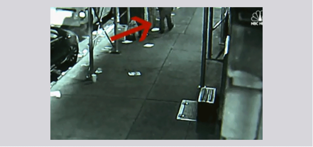 فيما ظهر في الفيديو صورة لشخصين من المارة اقتربا من قدر الضغط، هذا وتبحث شرطة نيويورك عن الشخصين كشاهدين وليس مشتبه بهما.