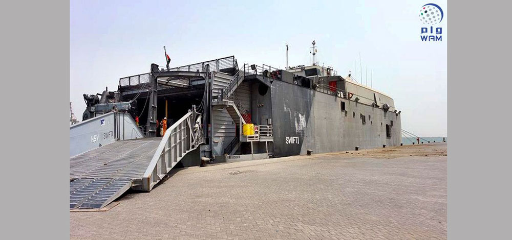 وأشار بيان صادر من وزارة الخارجية والتعاون الدولي الإماراتية إلى أن السفينة المدنية (سويفت) التابعة لشركة الجرافات الوطنية الإماراتية، نقلت على مدار الأشهر الماضية أطنانا من المساعدات الانسانية و آلاف السلال الغذائية و اكثر من 1000 جريح يمني ومرافقيهم للعلاج في الخارج.