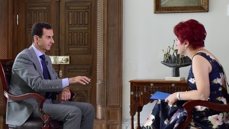 وظهرت المراسلة في المشاهد التي تم بثها بالمقابلة ترتدي فستاناً يظهر أنوثتها، في حين وجهت انتقادات صريحة لبشار الأسد .