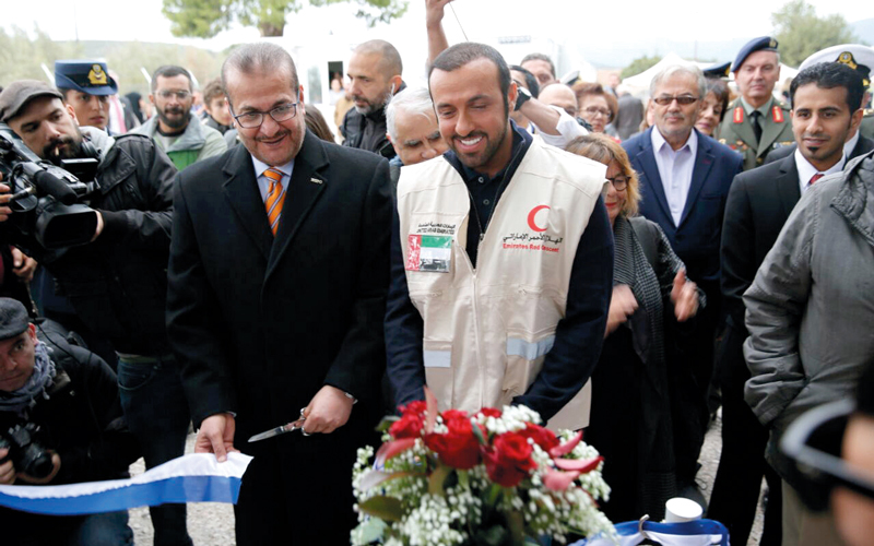 وأضاف سموه: «منذ بداية الأحداث المؤسفة تعاملت الإمارات مع الأزمة السورية التي تتسع رقعتها حالياً وتتفاقم تداعياتها على المدنيين بجدية تامة ومسؤولية كبيرة، وكانت حاضرة عبر هيئة الهلال الأحمر الإماراتي ومنظمات الدولة الإنسانية الأخرى وسط اللاجئين السوريين في الأردن ولبنان والعراق، والآن في اليونان انطلاقاً من مسؤوليتها تجاههم وتجاوباً مع أوضاعهم الاستثنائية»، مؤكداً سموه أن هيئة الهلال الأحمر عملت خلال السنوات الأخيرة الماضية عبر عدد من المحاور لتوفير احتياجات اللاجئين المعيشية والصحية والإيوائية والتعليمية والخدمية في تلك الساحات.
