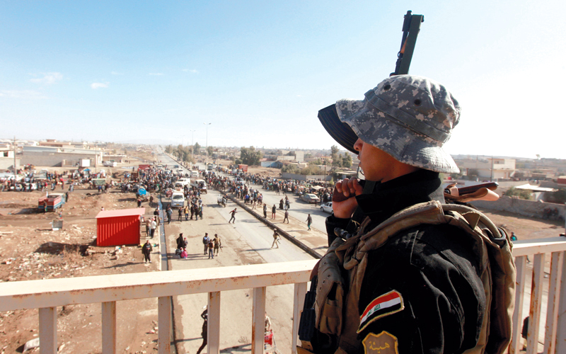 عنصر أمن يقف حارساً في الموصل. رويترز