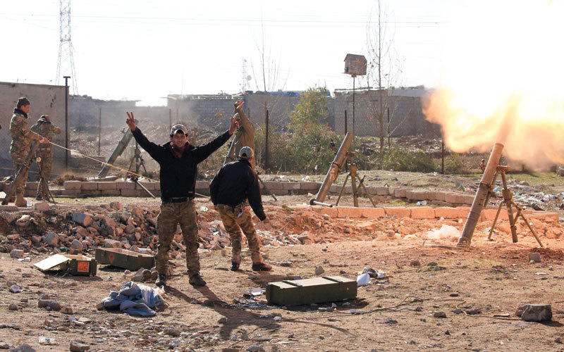 قوات عراقية تقصف بالهاون مواقع لـ «داعش» في الموصل. رويترز