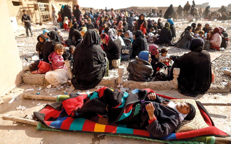 نازحون من غرب الموصل داخل قاعدة للقوات الخاصة. رويترز