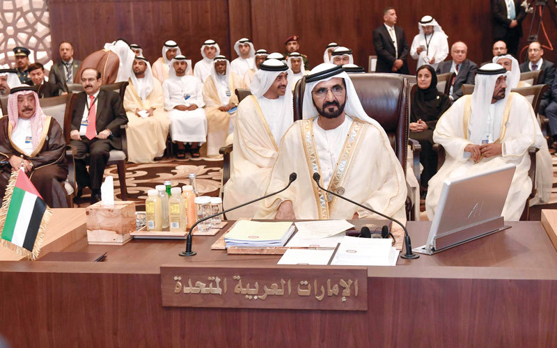 محمد بن راشد خلال الجلسة الافتتاحية للقمة العربية الـ28. وام