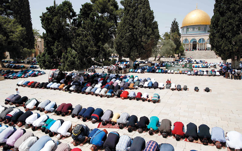 فلسطينيون يؤدون صلاة الجمعة في ساحة الأقصى. أ.ف.ب