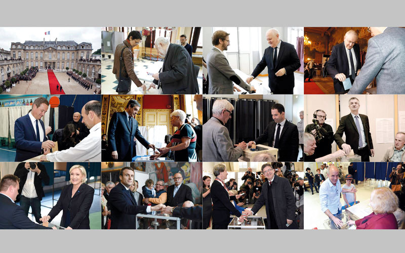 صورة مركبة للمرشحين لرئاسة فرنسا خلال الإدلاء بأصواتهم في الانتخابات. أ.ف.ب
