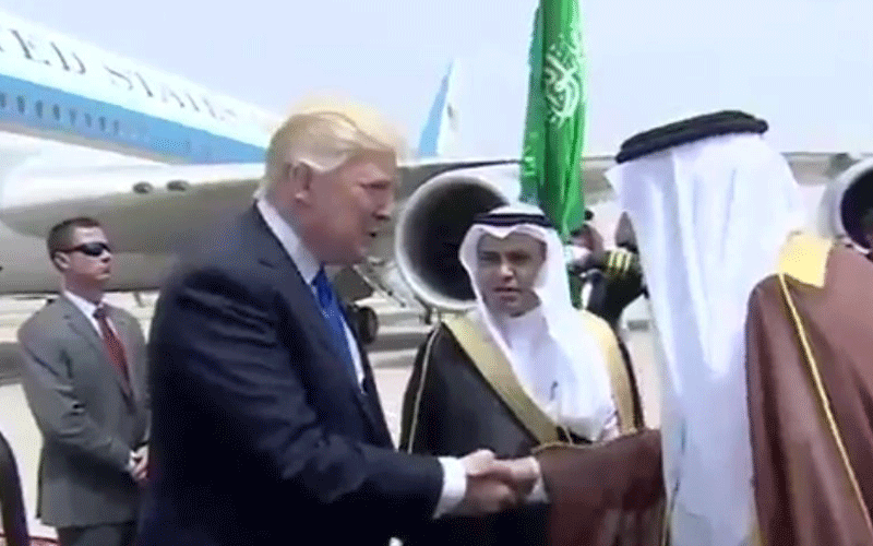 وذكرت وكالة الانباء السعودية ان خادم الحرمين الشريفين الملك سلمان بن عبدالعزيز آل سعود كان في مقدمة مستقبلي الرئيس الأميركي بمطار الملك خالد الدولي.