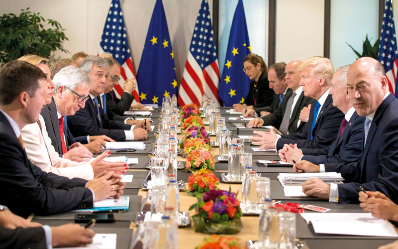 اجتماع ترامب مع كبار مسؤولي الاتحاد الأوروبي في بروكسل. أ.ف.ب