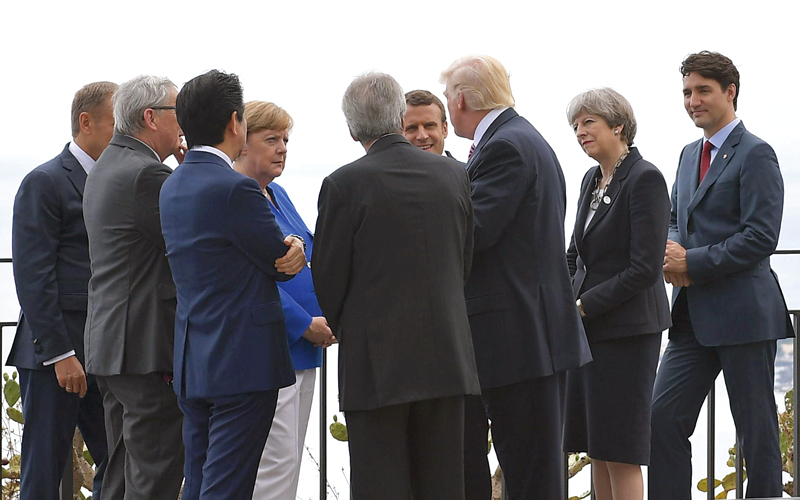 سجلت كاميرا الفيديو رئيس الوزراء الكندي، جاستن ترودو، وهو يقف وحيداً، خلال إحدى حلقات الجدال الساخن في قمة السبعة بجزيرة صقلية، ويبدو ترودو مبتسماً، وهو يقف على مبعدة من مجموعة من كبار الزعماء، بينهم المستشارة الألمانية أنغيلا ميركل، والرئيس الأميركي دونالد ترامب، وهما في ما يبدو محتدّان، ويتجادلان بنفس حار. وعلى الرغم من مظاهر التشنج والعبارات الساخنة، التي عكرت صفاء سماء هذه المجموعة، بدا ترودو بارداً وغير مكترث، يحدق بعيداً في الأفق، وليست لديه الرغبة في الانضمام للمعركة المحتدمة.