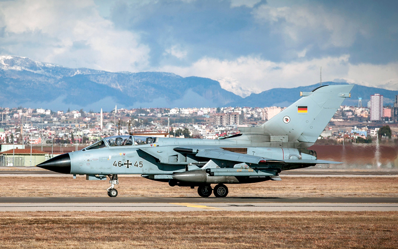 وستعلق ألمانيا لشهرين طلعات طائراتها الاستطلاعية تورنيدو المتمركزة في «انجرليك» إلى أن تصبح عملانية في قاعدة الأزرق في الأردن قرب الحدود السورية.