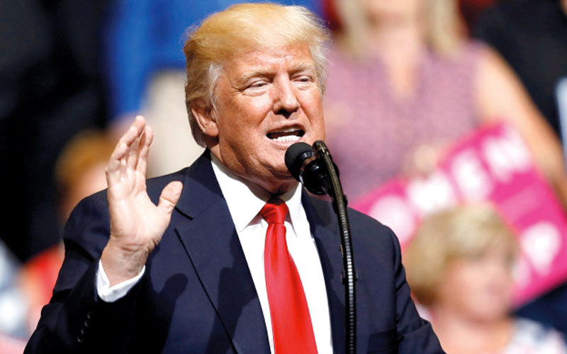 ترامب أثناء إلقاء كلمة أمام حشد بولاية أيوا. رويترز