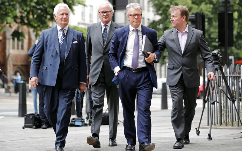 4 من المديرين السابقين في بنك باركليز لدى وصولهم إلى محكمة ويستمنستر. أ.ف.ب