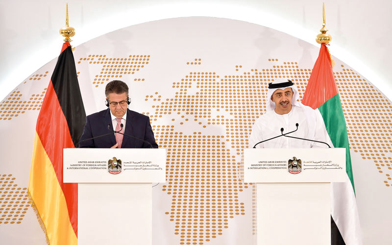 وكان سمو الشيخ عبدالله بن زايد آل نهيان رحّب في بداية المؤتمر الصحافي بوزير خارجية ألمانيا.