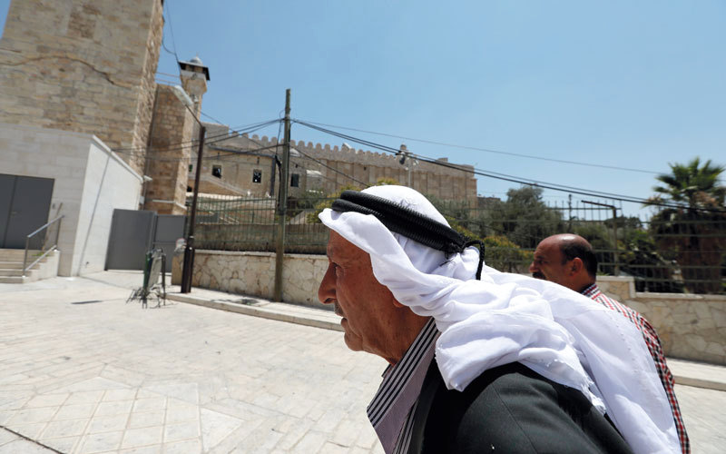 فلسطيني يمرّ بجوار المسجد الإبراهيمي بالخليل. إي.بي.إيه
