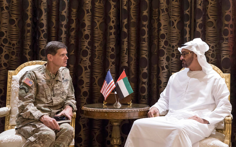 بحث صاحب السمو الشيخ محمد بن زايد آل نهيان، ولي عهد أبوظبي نائب القائد الأعلى للقوات المسلحة، مع قائد القيادة المركزية الأميركية الفريق أول، جوزيف فوتيل، جهود محاربة التطرف والإرهاب.