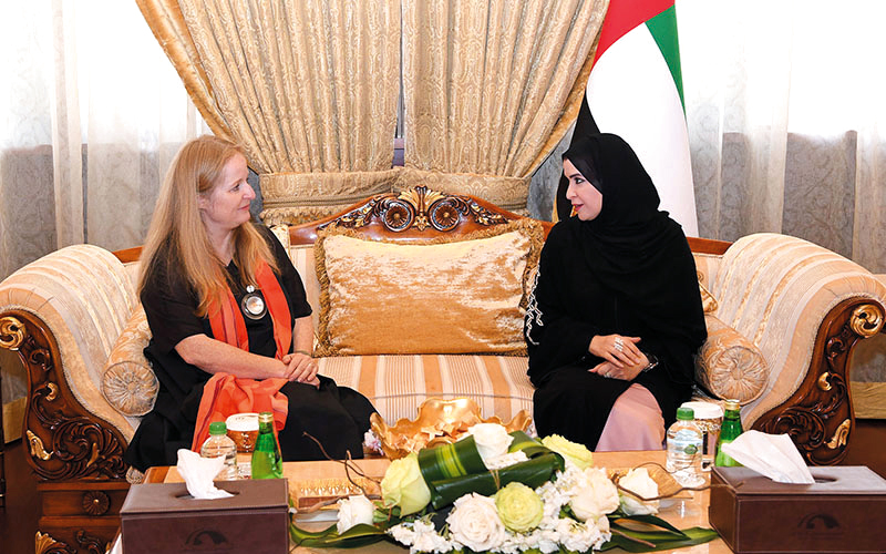 القبيسي لدى استقبالها السفيرة بيتنتنر في أبوظبي. وام