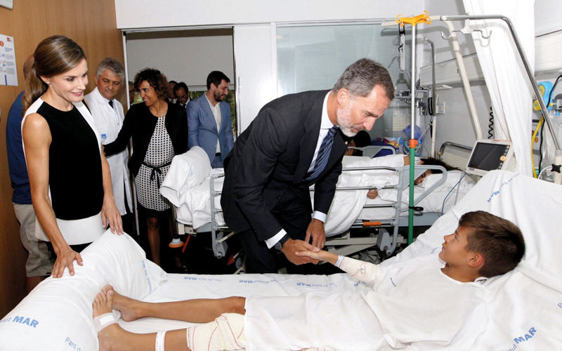 ملك إسبانيا فيليب السادس وقرينته يزوران طفلاً أصيب في هجوم كامبريلس. إي.بي.إيه