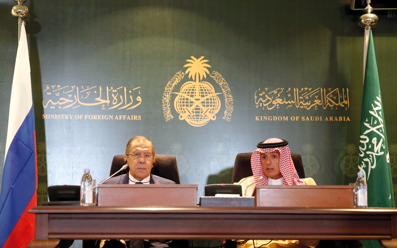 الجبير أكد خلال مؤتمر صحافي مع لافروف أن مواقف السعودية وروسيا في القضايا الإقليمية متطابقة. أ.ف.ب