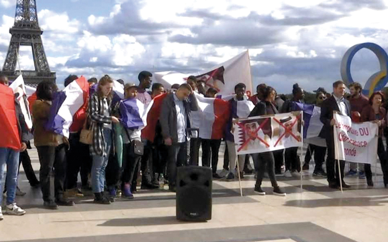 في خطوة رافضة لزيارة أمير قطر، الشيخ تميم بن حمد آل ثاني، لفرنسا، قررت منظمات فرنسية وعربية في باريس تنظيم وقفات احتجاجية في ساحة «تروكاديرو» القريبة من برج إيفل الشهير، بالتزامن مع وصوله إلى قصر الإليزيه، وذلك للتعبير عن رفضهم استقباله من قبل الرئيس الفرنسي، إيمانويل ماكرون، أمس، ومطالبة الحكومة الفرنسية بممارسة ضغوط على حكام قطر لوقف دعمهم للإرهاب وتمويلهم له.