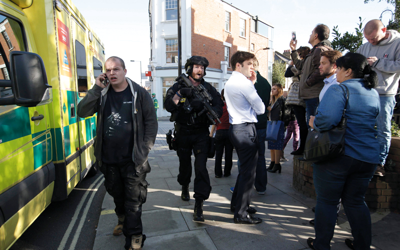عناصر أمنية في محطة مترو لندن عقب التفجير. أ.ف.ب