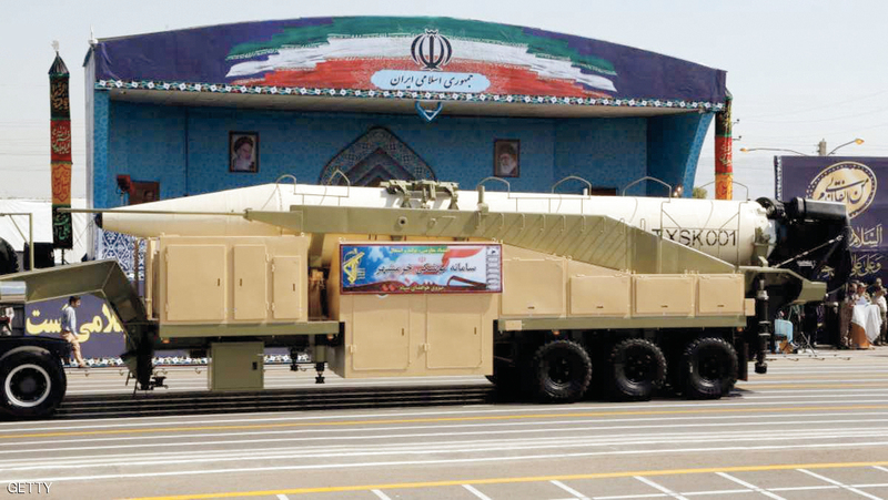 صاروخ «خرمشهر» خلال استعراض عسكري في طهران الجمعة. أ.ف.ب