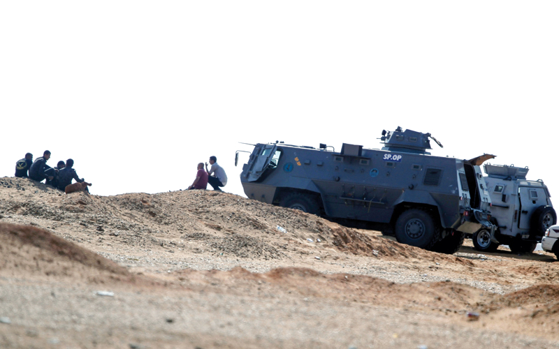 عناصر أمن مصريون بجوار سيارة مدرعة على طريق الواحات. إي.بي.إيه