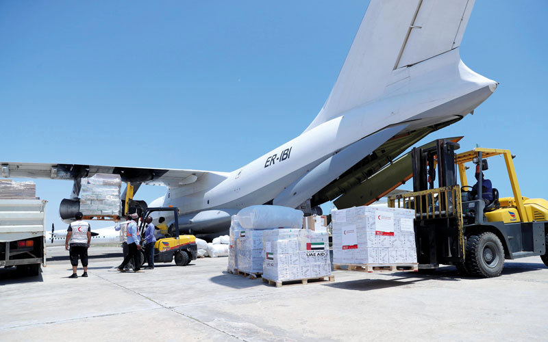 خلال تفريغ الأدوية والمعدات والمستلزمات الطبية الإماراتية في مقديشو. وام