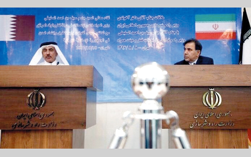 أعلن وزير الطرق والمدن الإيراني، عباس آخوندي، عن اتفاق إيراني - قطري، حول إنشاء ممرين بحري وجوي بين البلدين، فيما أكد وزير الطرق والنقل القطري، جاسم سيف السليطي، من طهران، أن استثمارات الدوحة وطهران «باقية وستتضاعف».