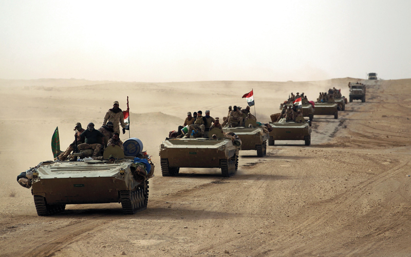 القوات العراقية خلال تقدمها في بلدة القائم. أ.ف.ب