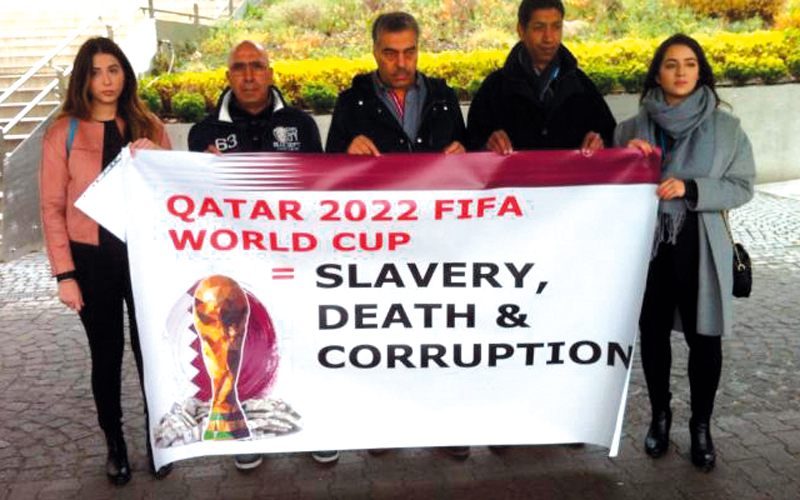 وكانت المنظمة العربية لحقوق الإنسان في بريطانيا وعدد آخر من المنظمات المعنية بحقوق الإنسان، نظمت الخميس الماضي، وقفة بميدان محمد أسد أمام مقر منظمة الأمم المتحدة بالعاصمة النمساوية فيينا، احتجاجاً على تنظيم قطر لمونديال كأس العالم 2022.