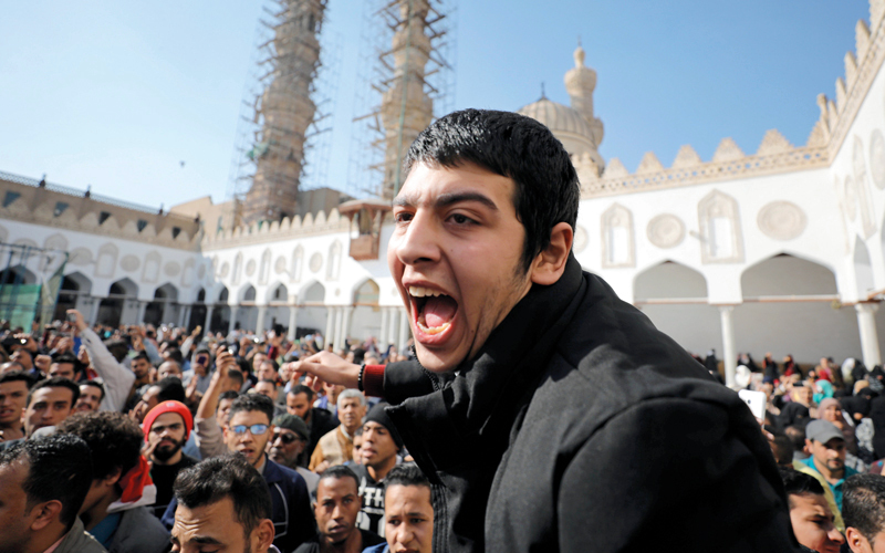 تظاهرة أمام الجامع الأزهر احتجاجاً على قرار القدس. رويترز