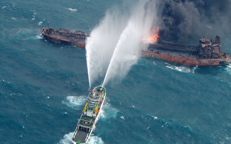 ناقلة نفط إيرانية مشتعلة تجنح إلى المنطقة الاقتصادية الخالصة لليابان