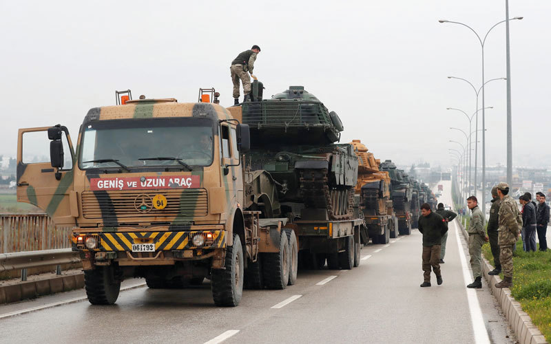 تعزيزات عسكرية تركية في بلدة ريحانلي قرب الحدود السورية. رويترز