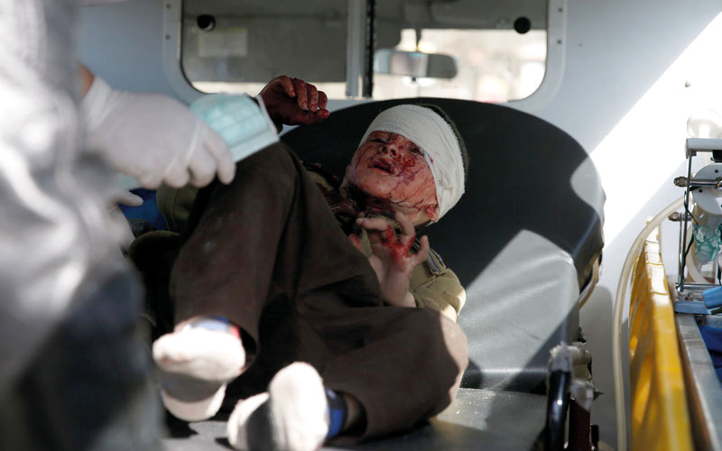 طفل مصاب في سيارة إسعاف بعد انفجار كابول. رويترز