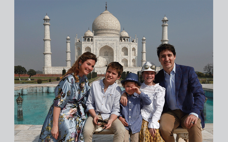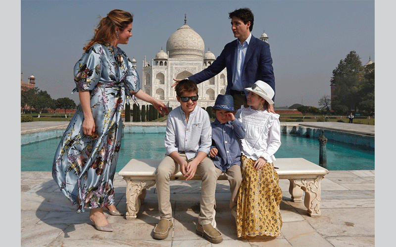 بالصور .. رئيس الوزراء الكندي وعائلته في تاج محل بالهند