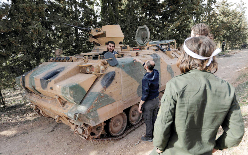 مقاتلون من المعارضة السورية الموالين لتركيا في جبل بافليون بعفرين. رويترز