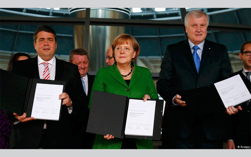 يشهد يوم غد إعادة انتخاب المستشارة الألمانية، انجيلا ميركل، على رأس الحكومة الألمانية لولاية رابعة، وذلك عقب مفاوضات شاقة استمرت ستة أشهر بين الاتحاد الديمقراطي المسيحي (حزب ميركل)، والاتحاد المسيحي الاجتماعي، والحزب الاشتراكي الديموقراطي، لينتج عنها عقداً للائتلاف الحكومي تم تفصيل بنوده في 177 صفحة، وتضمن عدداً من البنود الغريبة بالمنطق السياسي.