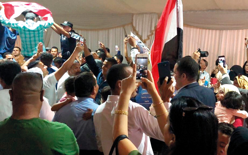 توافد آلاف الناخبين من المصريين المقيمين في الدولة، منذ التاسعة من صباح أمس، إلى مقر السفارة المصرية في أبوظبي، للإدلاء بأصواتهم في الانتخابات الرئاسية 2018، وسط أجواء احتفالية وأغانٍ ورقص، إذ امتدت طوابير الناخبين خارج لجنة السفارة في أبوظبي، إلى الشوارع الرئيسة والجانبية للسفارة، وذلك بعد أن تكدست السفارة ومحيطها الخارجي بآلاف الناخبين من الرجال والنساء ومن كل الأعمار.