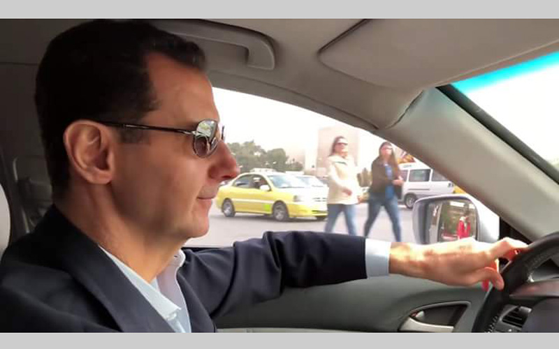 تباهى رئيس النظام السوري بشار الأسد ب «المكاسب» التي حققتها قوات النظام في الحرب الدائرة في بلاده منذ سبع سنوات بلقطات تصوره وهو يقود سيارة بنفسه للقاء جنود على جبهة قتال قرب دمشق من بداية الرحلة في وسط العاصمة وحتى المناطق التي استعادها الجيش من المعارضة.