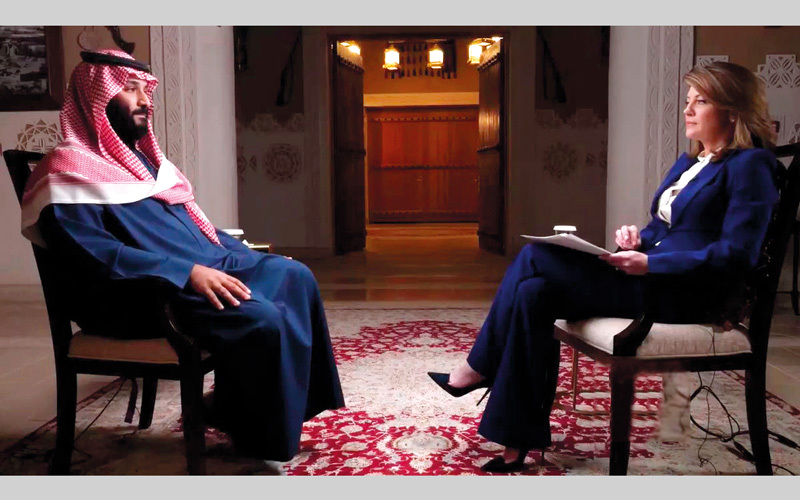 ولي العهد السعودي خلال المقابلة مع «سي بي إس». «سي بي إس»