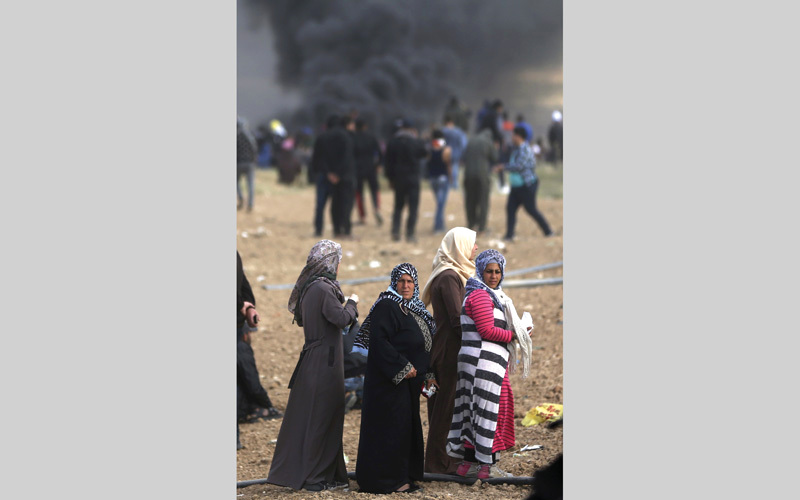 مواجهات بين الفلسطينيين والقوات الإسرائيلية في «يوم الأرض». أ.ب