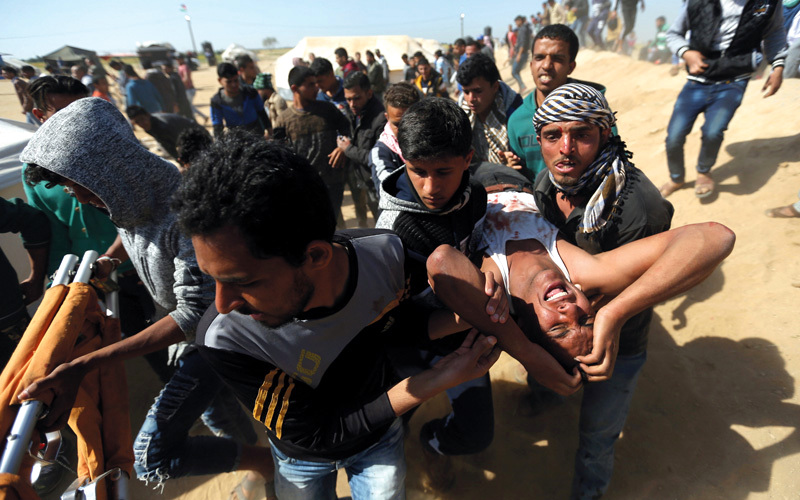 أصيب ستة شبان فلسطينيين، أمس، برصاص الاحتلال في قطاع غزة والضفة الغربية المحتلة، بينهم أربعة جراء إطلاق القوات الإسرائيلية النار تجاه تجمعات للمواطنين على حدود قطاع غزة. في وقت رفضت فيه إسرائيل النداءات الدولية لإجراء تحقيق مستقل، بعد استشهاد 16 فلسطينياً برصاص قواتها خلال تظاهرة «العودة» على طول السياج الحدودي مع غزة.