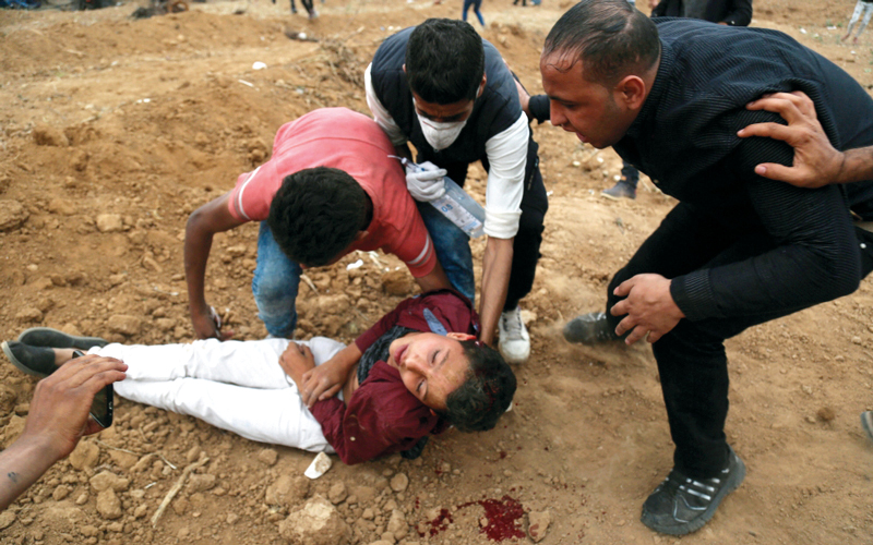 وفي غزة، أصيب ثلاثة فلسطينيين، أمس، بجروح، إثر تعرضهم لرصاص الاحتلال الإسرائيلي على طول الحدود الشرقية للقطاع.